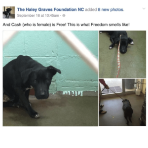 June Cash era un perro que Tammy Graves, fundadora y directora ejecutiva de la Fundación Haley Graves vio por primera vez. Graves no podía soportar ver al perro en un rincón, así que hizo los arreglos necesarios para que fuera acogido.